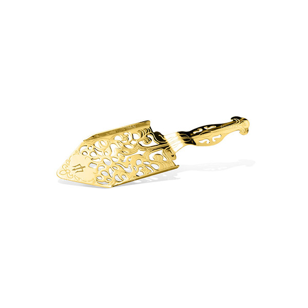 Inspirée des rituels du XIXᵉ siècle, la cuillère à absinthe style or associe tradition et raffinement moderne. Sa structure en inox ajouré permet de poser un morceau de sucre au-dessus du verre avant de le laisser s’imprégner délicatement d’eau glacée ou d’absinthe, pour un service aussi esthétique que précis.