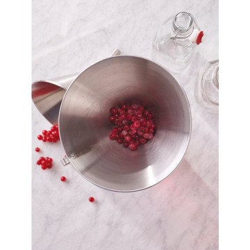 Conçu pour les environnements professionnels exigeants, cet entonnoir en acier inoxydable Paderno Ø12 cm garantit un transvasement propre, rapide et maîtrisé de tous types de liquides et préparations.