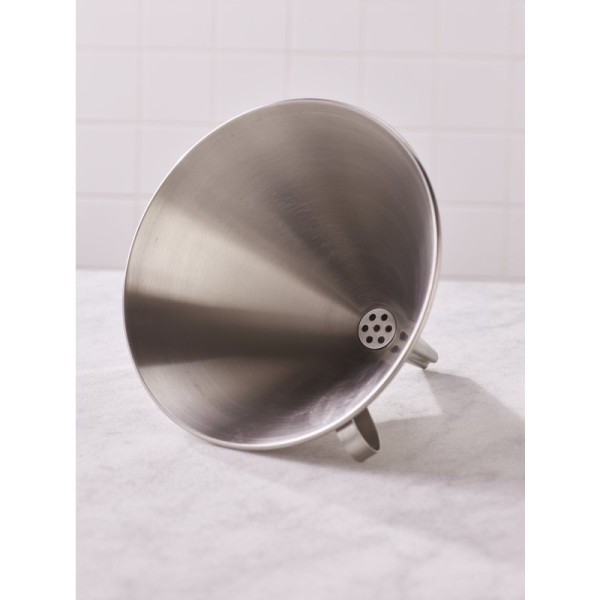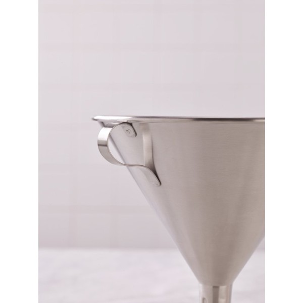 Entonnoir professionnel en acier inoxydable Ø12 cm, idéal pour le transvasement précis de liquides, sirops, alcools et préparations culinaires. Robuste, hygiénique et parfaitement adapté à un usage intensif en bar, cuisine ou laboratoire.
