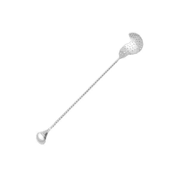 Cuillère de bar 40 cm avec filtre intégré. Design torsadé en inox pour mélanger, doser et filtrer vos cocktails comme un pro. Idéale pour les bartenders exigeants.
